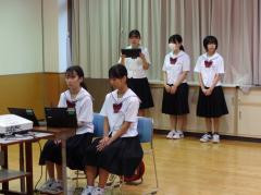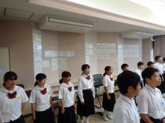 夏休みに行われた中学生議会で提案した「街灯の設置」について、中学生議会に参加した五人のメンバーが今まで活動した取組を西条市長さんを本校にお招きして報告しました。