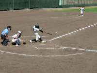 1回裏、丹原東西野球部は、2点を先取しました。丹原西中の部員も守備に攻撃に大活躍です。