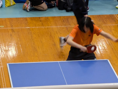 【女子卓球部】1年生は素振り、2・3年生は基本練習に取り組んでいました。