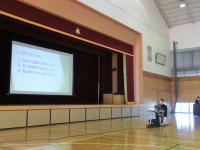 学団会を行いました。「地震が起きたらどう行動するか?」というテーマで学団ごとに話合いをしました。地域の危険個所や避難場所や経路などを確認しました。話し合った内容を全体の前で発表し、情報を共有しました。最後に校長先生から、「昨晩の地震の時、もし停電したらどう行動するのか」など、いろいろなケースを想定して自分で考え判断することが大切であること。家族や周囲の人と危険個所や避難場所について日ごろから確認しておくことが大切であること。などのお話がありました。