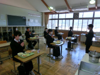 生徒たちが楽しみにしている『給食』も今日から開始されました。今日は、メニューにお祝いクレープが出ています。