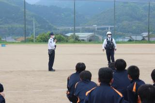 2024年4月22日 16時30分西条西警察署、中川駐在所から2名の方を講師として招き、交通安全教室を行いました。自転車の安全な乗り方や交通ルール、危険個所について全校生徒で考え、体験しました。