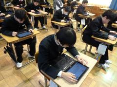 3年A組は社会の授業で地理の復習をしていました。真剣に取り組んでいます。