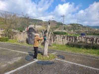 2025年4月7日 09時19分😊木が腐って倒木の危険があった体育館前の木をPTA会長さんや地域の皆さんが切ってくれました。(4月6日)