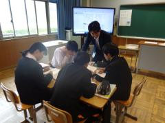 3年A組は国語の授業で資料「握手」の学習をしていました。班で意見を出し合い、考えを深めていました。